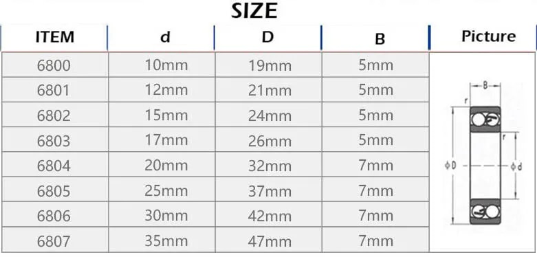 Bạc đạn vòng bi 6807RS 6807 (35x47x7mm) là một loại vòng bi rãnh sâu hai dãy kín. Nó có đường kính ngoài 47 mm, đường kính trong 35 mm và độ dày 7 mm. Vòng bi được làm bằng thép chịu lực cao và được bôi trơn bằng mỡ.