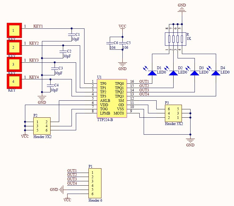Bàn phím cảm ứng 4 chạm điện dung TTP224 được sử dụng để làm bàn phím, công tắc cảm ứng điện dung, công tắc ẩn,..., với khả năng có thể nhận biết điện dung từ tay người qua 4 vị trí cảm ứng với độ nhạy cao, bàn phím phù hợp với các ứng dụng cần độ bền, tạo sự độc đáo và chuyên nghiệp trong các ứng dụng điều khiển cảm ứng.