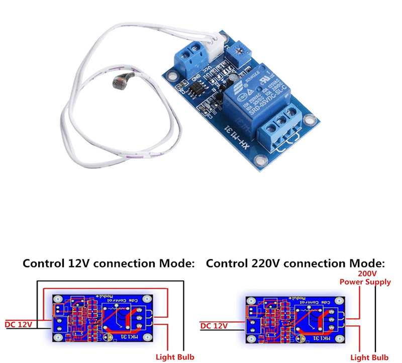 Cảm biến ánh sáng quang trở CDS Relay 12VDC được sử dụng để điều khiển bật tắt thiết bị điện qua relay theo cường độ ánh sáng mong muốn, cảm biến sử dụng điện áp thông dụng 12VDC với cảm biến ánh sáng quang trở CDS có dây nối dài linh hoạt và biến trở điều chỉnh cường độ ánh sáng dễ dàng, phù hợp cho vô số các ứng dụng khác nhau: bật tắt đèn tự động, nhà thông minh,...