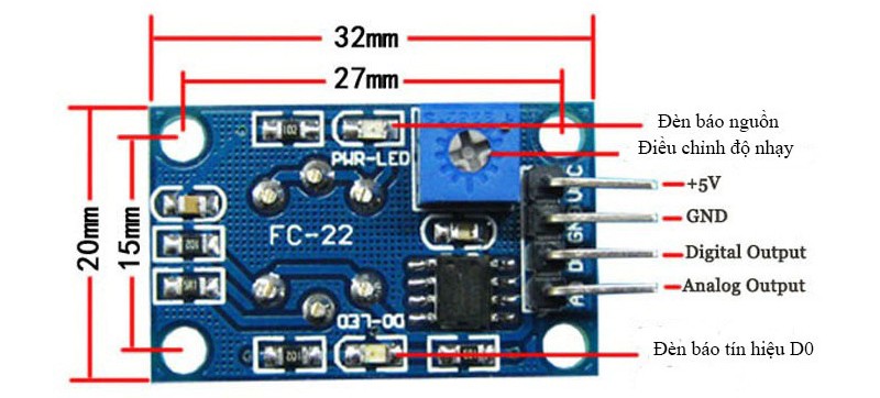 Cảm biến xuất ra cả hai dạng tín hiệu là Analog và Digital, tín hiệu Digital có thể điều chỉnh mức báo bằng biến trở.