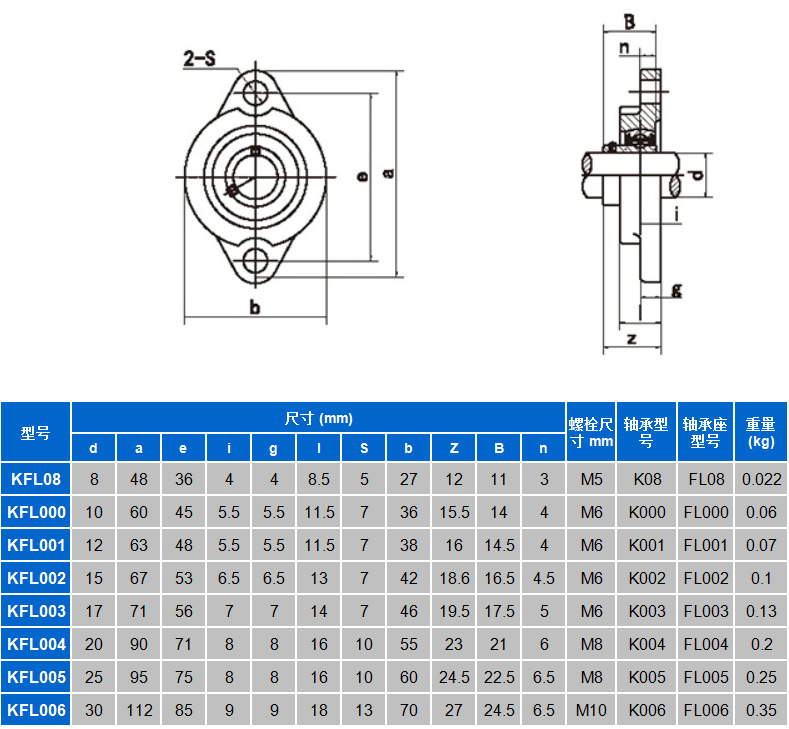 Gối đỡ nằm KFL08, KFL001 và KFL000 là các loại gối đỡ bi cầu đơn chặn đôi, có vòng ngoài dạng trụ và vòng trong dạng nằm ngang. Gối đỡ này được sử dụng rộng rãi trong các ứng dụng đòi hỏi độ chính xác cao, chịu tải trọng vừa phải.