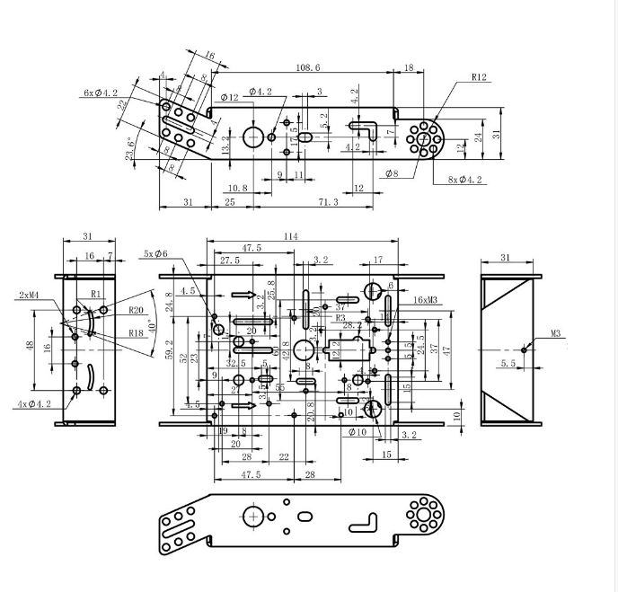 Khung xe robot nhôm 2WD A30 Metal Robot Chassis có phần khung được làm bằng nhôm mạ màu cho độ bền và độ thẩm mĩ cao, động cơ đi với khung xe là loại động cơ giảm tốc V1 phổ biến với điện áp sử dụng 6~9VDC, bánh xe đi kèm là loại chuyên dụng được thiết kế riêng với khung xe giúp khung xe có thể đi chuyển 1 cách linh hoạt và chính xác, ngoài ra khung xe còn có các phần thiết kế với lỗ bắt vít đa dụng giúp bạn dễ dàng lắp đặt pin, cảm biến, động cơ RC Servo, board mạch điện,...một cách dễ dàng.