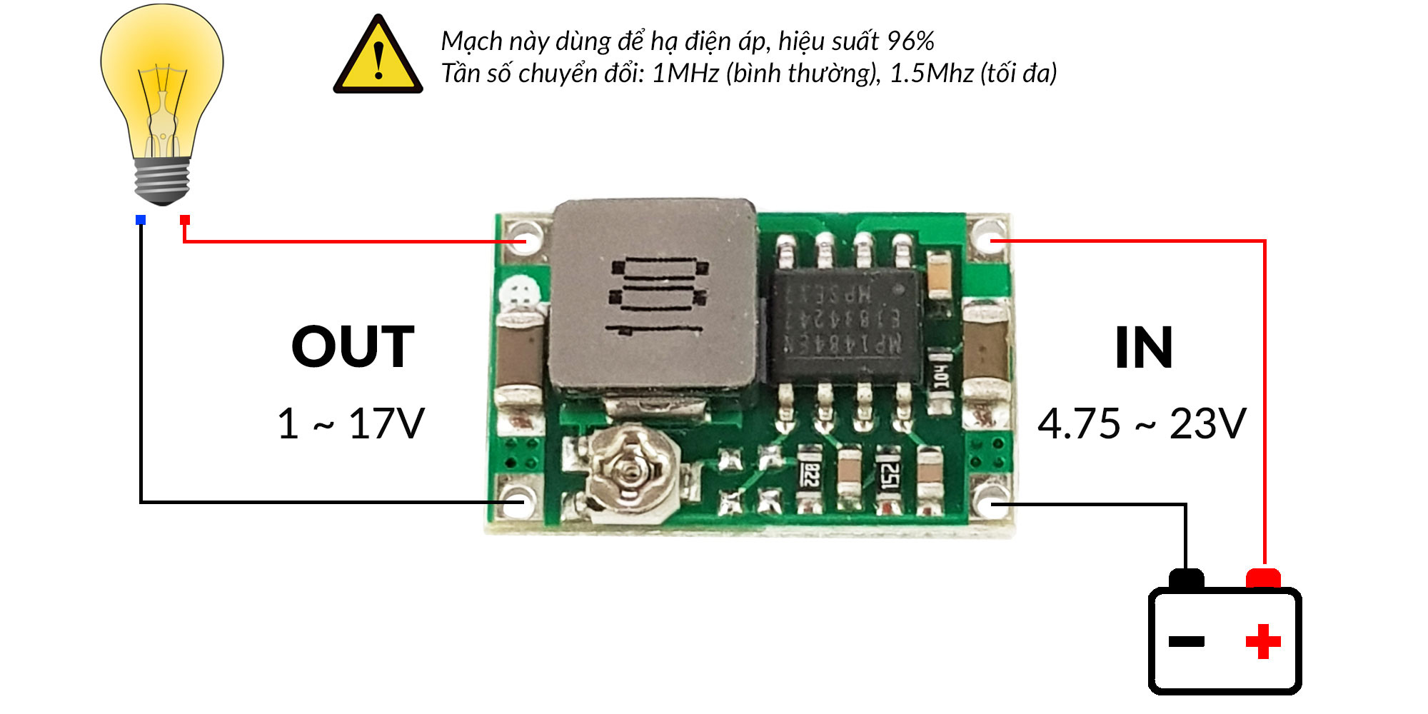Mạch giảm áp mini 360 3A là mạch chuyển đổi điện áp DC-DC đầu ra 3A với kích thước nhỏ gọn, thay thế cho LM2596S và đảm bảo được hiệu suất tốt, dùng để thiết kế các mạch nguồn cho các thiết bị nhỏ như mô hình, thiết bị di động, camera,…