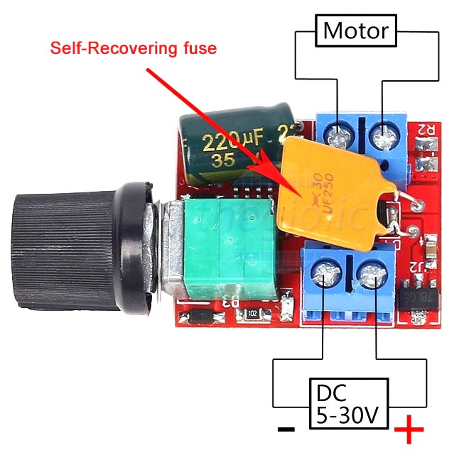 Mạch điều khiển động cơ DC 5A là mạch công suất thường được sử dụng để điều khiển tốc độ động cơ nhanh chậm (PWM) hoặc điều khiển Led sáng tối (Dimmer),…, mạch điều khiển động cơ DC 5A có công suất đầu ra tối đa lên đến 90W (theo thông số nhà SX), dải điện áp đầu vào rộng từ 3 ~ 35VDC, dòng đầu ra tối đa 5A, phù hợp cho nhiều ứng dụng điều khiển khác nhau.