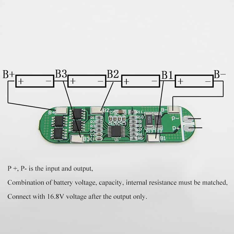 Mạch sạc bảo vệ 4cell pin 18650 Nối Tiếp 12A được sử dụng để sạc 4 cell pin 18650, mạch có tính năng sạc riêng rẽ cho từng cell, tự động ngắt khi đầy, bảo vệ chập nguồn, quá áp và dưới áp.