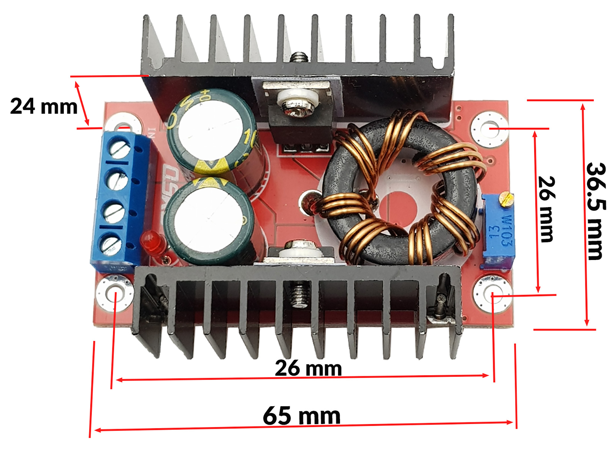 Mạch tăng áp DC-DC Boost Converter 150W được sử dụng để tăng điện áp DC với đầu vào tối thiểu 11VDC, đầu ra tối đa có thể tăng lên đến 34VDC, mạch có công suất lên đến 150W và biến trở tùy chỉnh dễ dàng phù hợp cho nhiều ứng dụng cần tăng áp DC khác nhau.