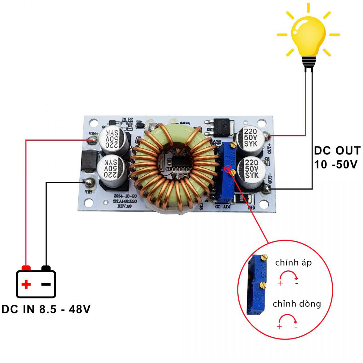 Mạch Tăng Áp 10A 250W được sử dụng để nâng điện áp DC lên mức mong muốn với khả năng tăng áp tối đa lên đến 50VDC / 250W, mạch có thiết kế nhỏ gọn, dễ sử dụng với hai biến trở điều chỉnh dòng và áp đầu ra, mạch sử dụng linh kiện chất lượng tốt, độ bền cao sẽ là một sự lựa chọn tuyệt vời cho các dự án của bạn.