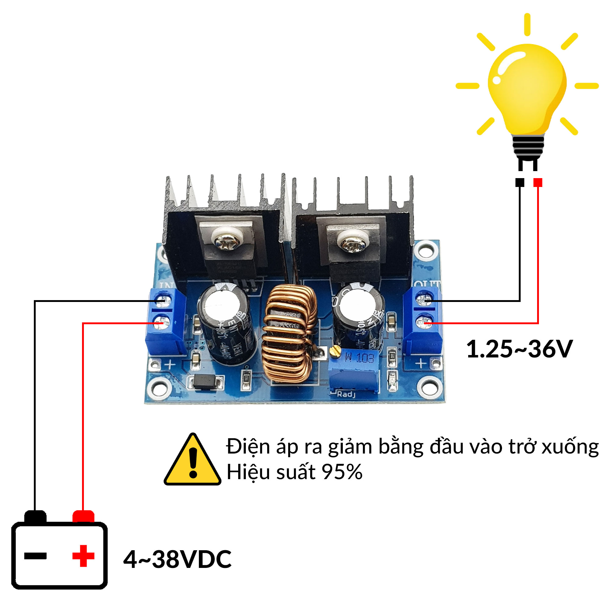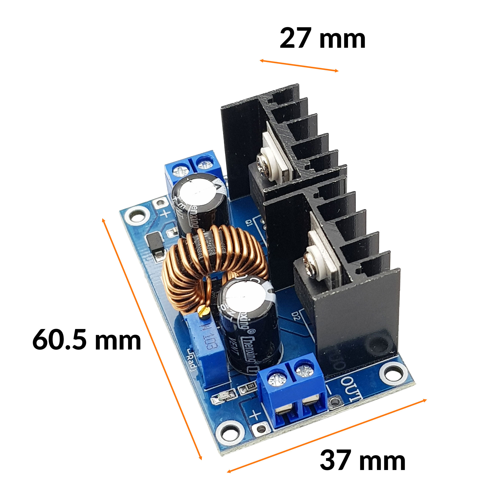 Mạch giảm áp XL4016 8A hiển thị led có chức năng điều chỉnh hạ điện áp với dòng tải tối đa lên đến 8A, công suất tối đa lên đến 250W.