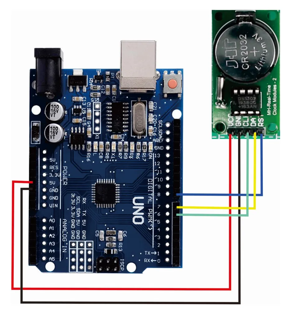 Mạch thời gian thực RTC DS1302 được sử dụng để cung cấp thông tin thời gian: ngày, tháng, năm, giờ, phút, giây,...cho vi điều khiển với chỉ 3 chân tín hiệu giao tiếp là Reset, Data và Clock, mạch có tích hợp pin CR2032 giúp duy trì thời gian khi không được cấp nguồn.