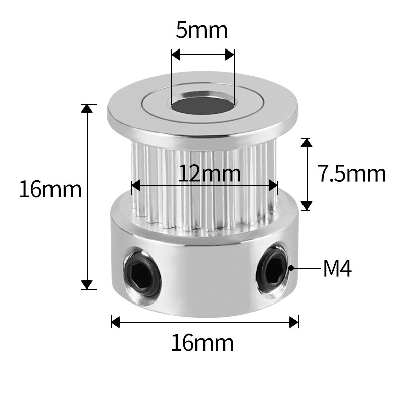Pulley GT2 20 răng bản 6mm trục 5mm cùng với đai răng GT2 là lựa chọn phổ biến nhất khi chế tạo máy in 3D và một số máy CNC mini.