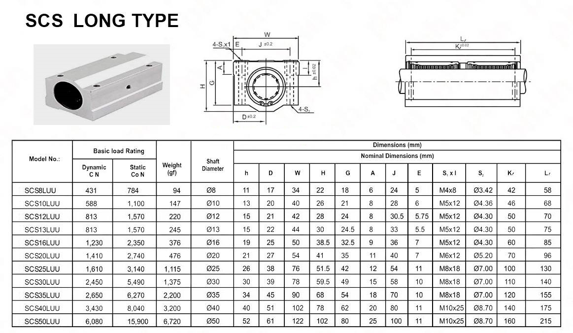 SCS8LUU, SCS10LUU, SCS12LUU, SCS16LUU là tất cả các thanh ray dẫn hướng tuyến tính được sử dụng trong hệ thống chuyển động tuyến tính. Chúng thường được sử dụng trong máy in 3D, máy CNC và các máy móc chính xác khác.