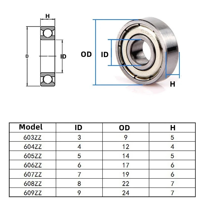 Vòng bi 603ZZ, 604ZZ, 605ZZ, 606ZZ, 607ZZ, 608, 608ZZ, 609ZZ là các loại vòng bi bi cầu đơn chặn đôi, được sử dụng rộng rãi trong các ứng dụng đòi hỏi độ chính xác cao, chịu tải trọng vừa phải.
